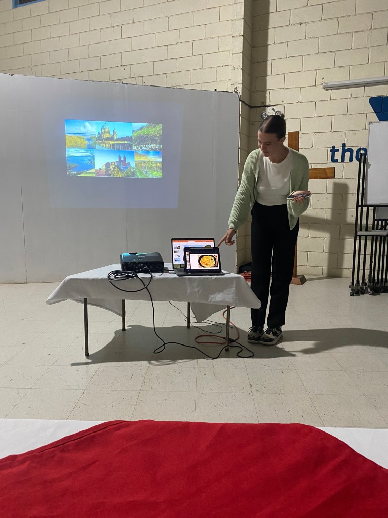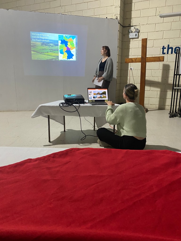 Kaum zurück haben Luise und ich unsere Leben, Familien und Umgebungen in Deutschland vorstellen dürfen. Dazu gab es ein von uns gekochte deutsches Gericht.